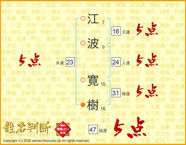 江波寛樹さんの総運は47画の5点!