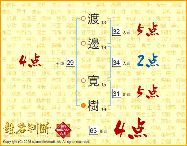 渡邊寛樹さんの総運は63画の4点!