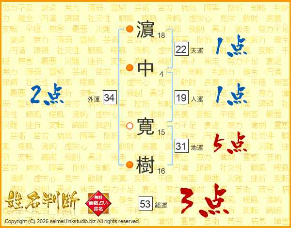 濵中寛樹さんの総運は53画の3点!