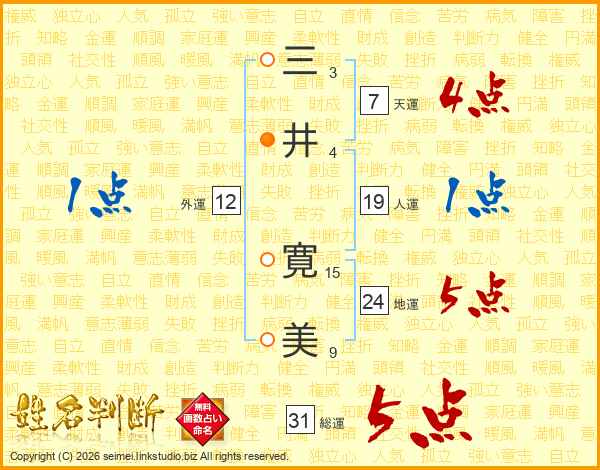 三井寛美さんの総運は31画の5点!