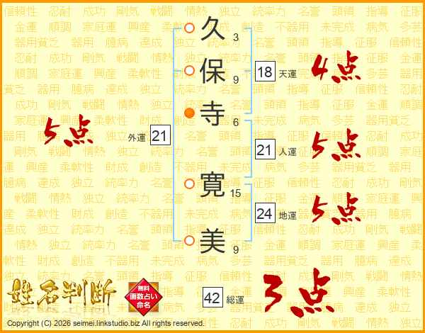 久(3画)保(9画)寺(6画) 寛(15画)美(9画)