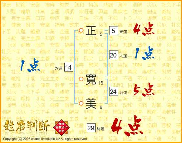 正(5画) 寛(15画)美(9画)