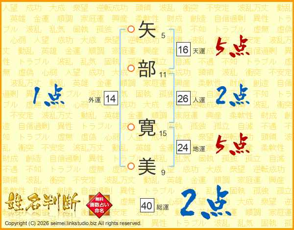矢(5画)部(11画) 寛(15画)美(9画)