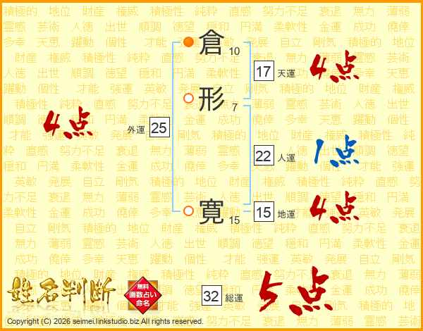 倉形寛さんの総運は32画の5点!