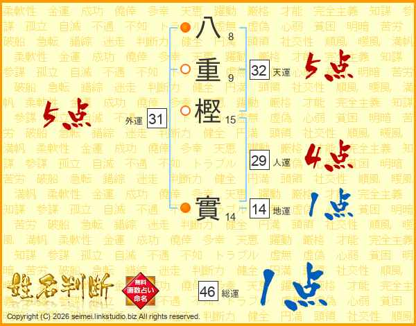 八重樫實さんの総運は46画の1点!