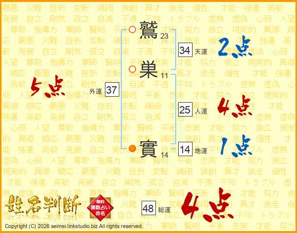 鷲巣實さんの総運は48画の4点!