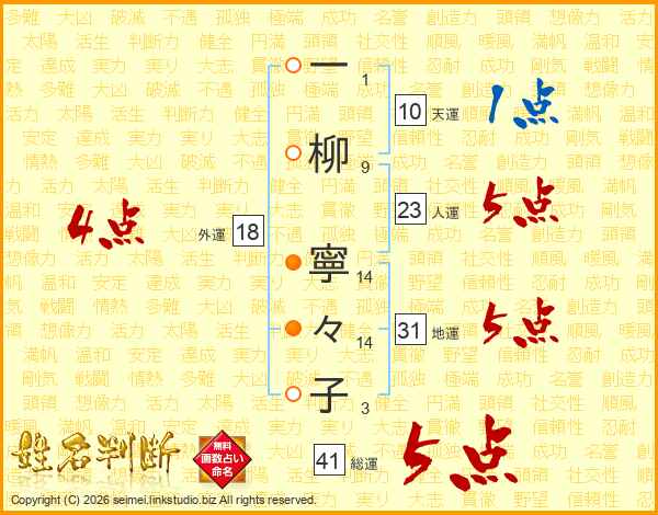 一柳寧々子さんの総運は41画の5点!