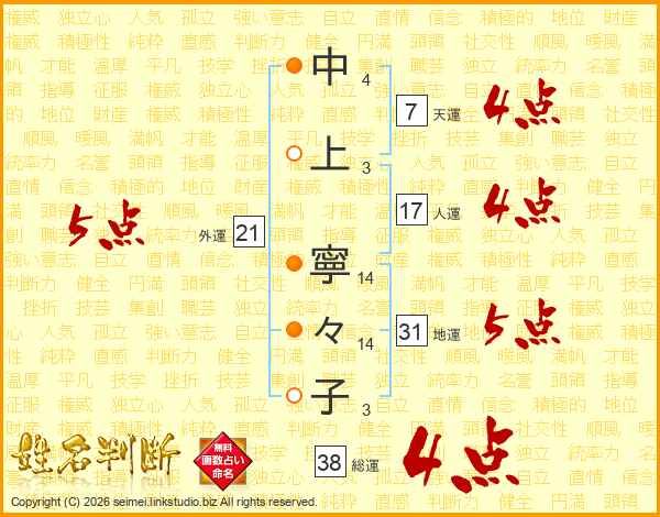 中上寧々子さんの総運は38画の4点!