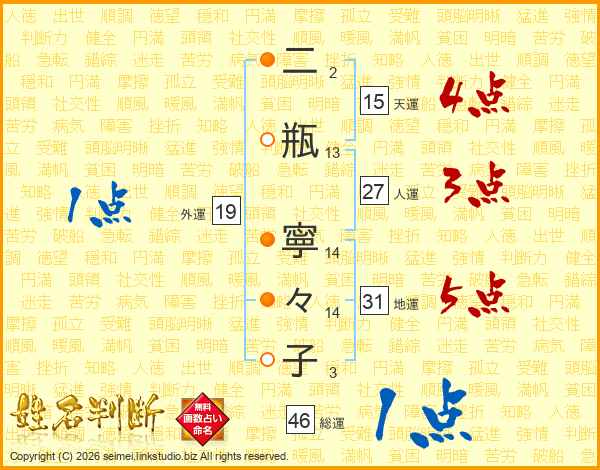 二瓶寧々子さんの外運は19画の1点!