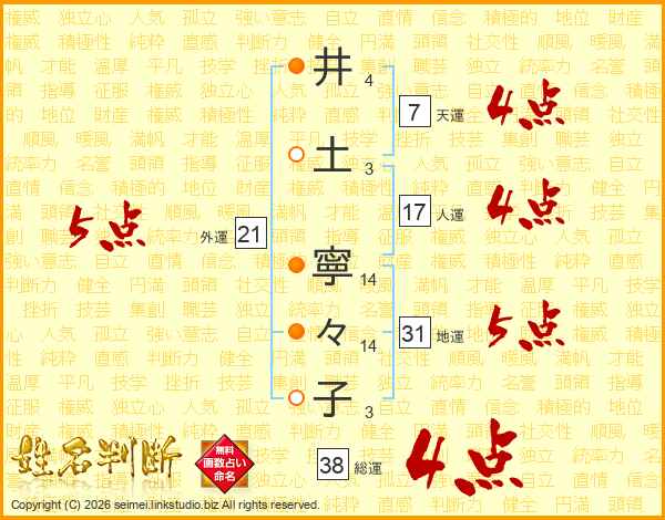 井土寧々子さんの総運は38画の4点!