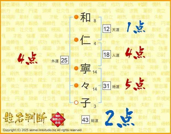 和(8画)仁(4画) 寧(14画)々(14画)子(3画)