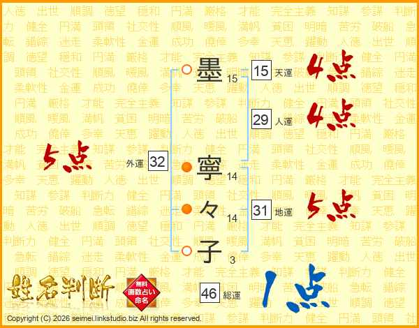 墨寧々子さんの外運は32画の5点!