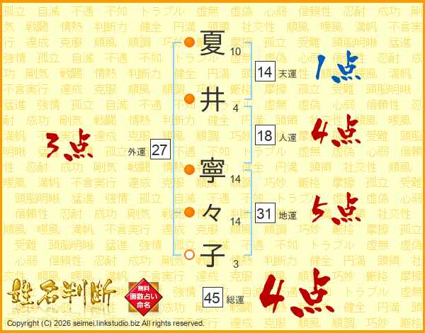 夏(10画)井(4画) 寧(14画)々(14画)子(3画)