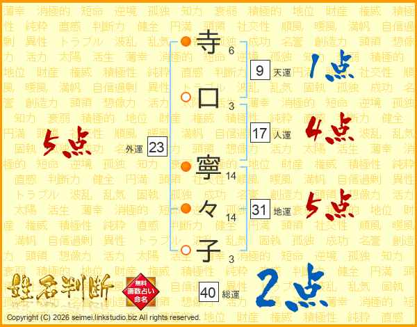 寺口寧々子さんの外運は23画の5点!