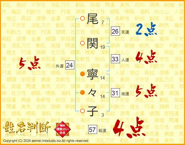 尾関寧々子さんの天運は26画の2点!