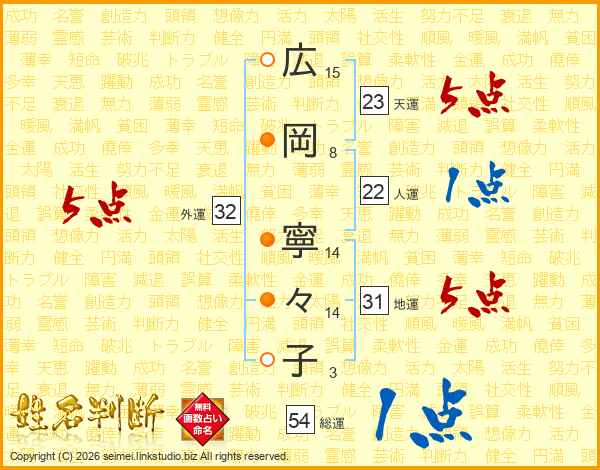広岡寧々子さんの総運は54画の1点!