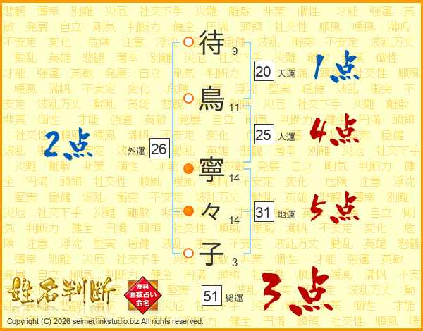 待鳥寧々子さんの外運は26画の2点!