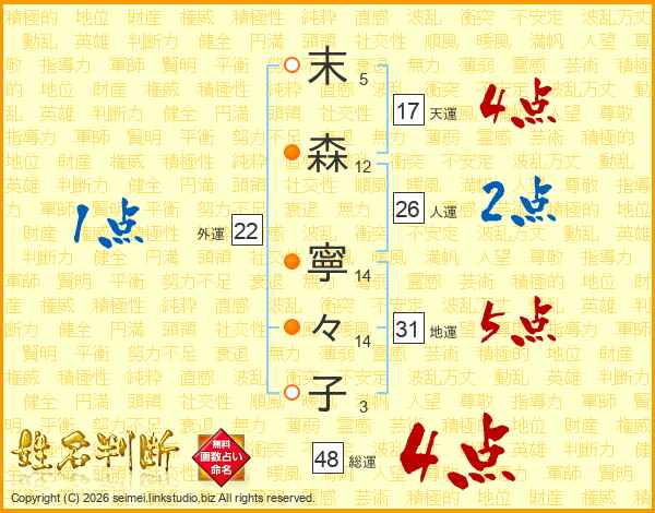 末森寧々子さんの天運は17画の4点!