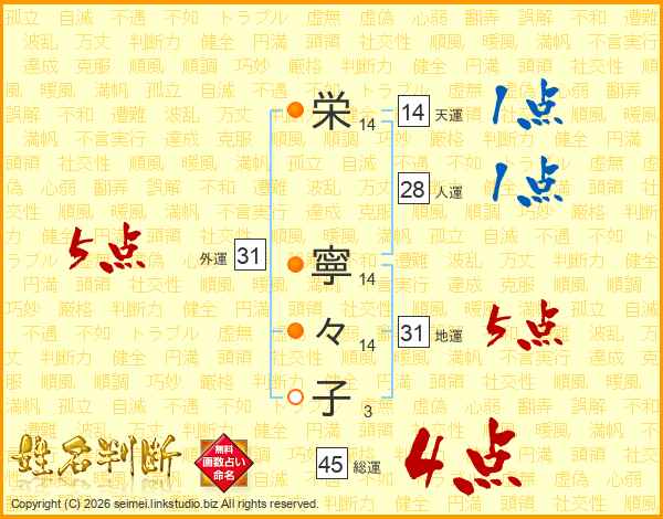 栄(14画) 寧(14画)々(14画)子(3画)