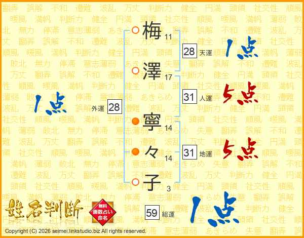 梅澤寧々子さんの地運は31画の5点!