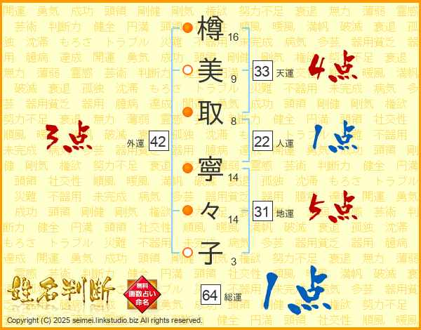 樽美取寧々子さんの総運は64画の1点!