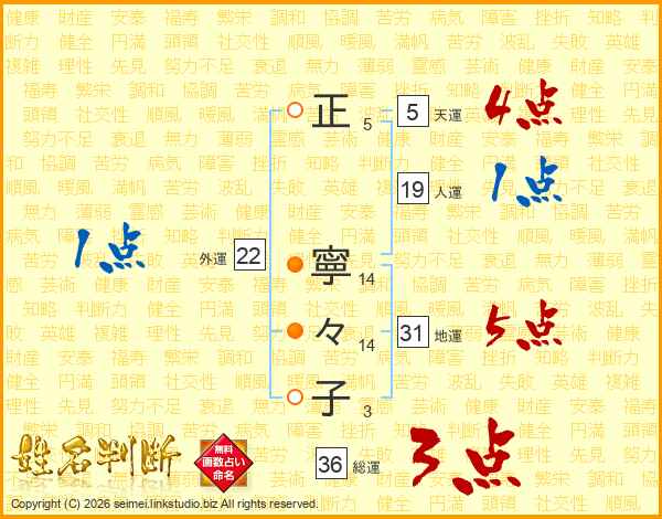 正寧々子さんの地運は31画の5点!