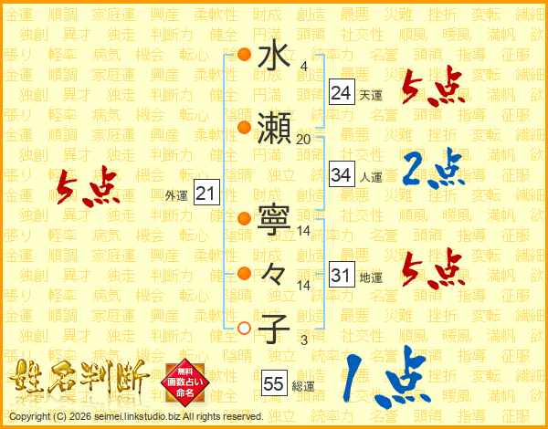水瀬寧々子さんの総運は55画の1点!