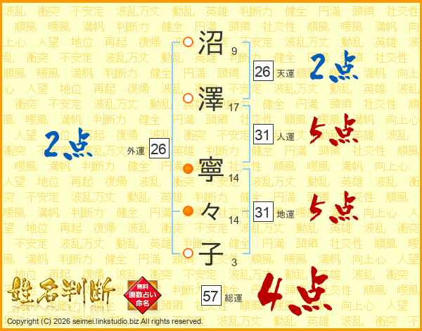 沼澤寧々子さんの総運は57画の4点!
