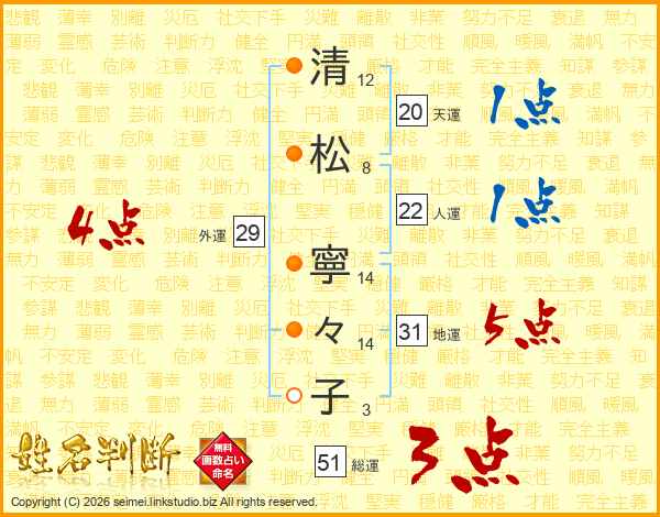 清松寧々子さんの地運は31画の5点!