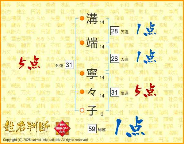 溝(14画)端(14画) 寧(14画)々(14画)子(3画)