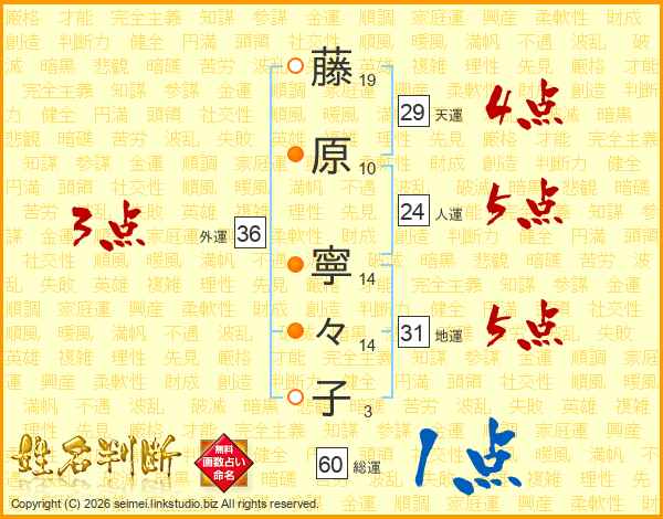 藤原寧々子さんの外運は36画の3点!