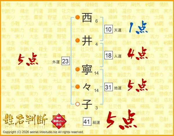 西井寧々子さんの地運は31画の5点!