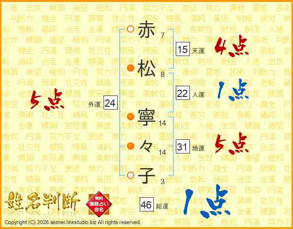 赤松寧々子さんの総運は46画の1点!