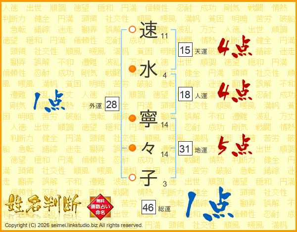 速(11画)水(4画) 寧(14画)々(14画)子(3画)