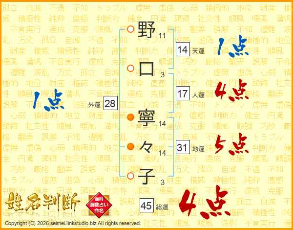 野口寧々子さんの総運は45画の4点!