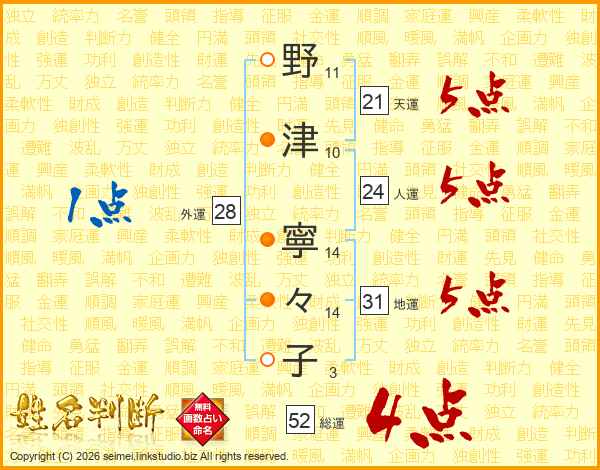 野津寧々子さんの総運は52画の4点!