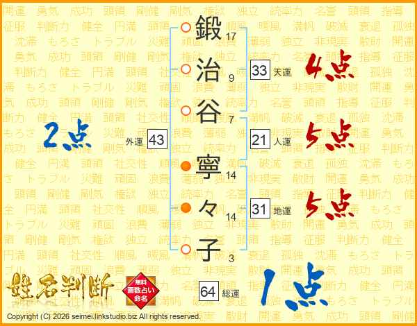 鍛治谷寧々子さんの天運は33画の4点!