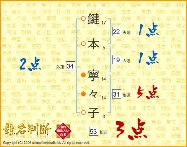 鍵本寧々子さんの総運は53画の3点!