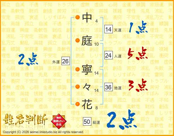 中庭寧々花さんの人運は24画の5点!