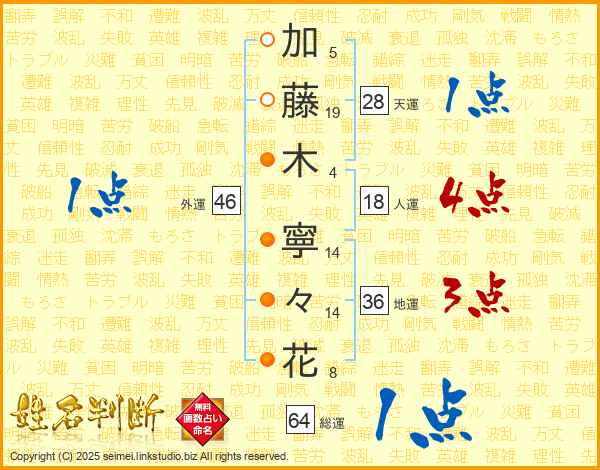 加藤木寧々花さんの総運は64画の1点!