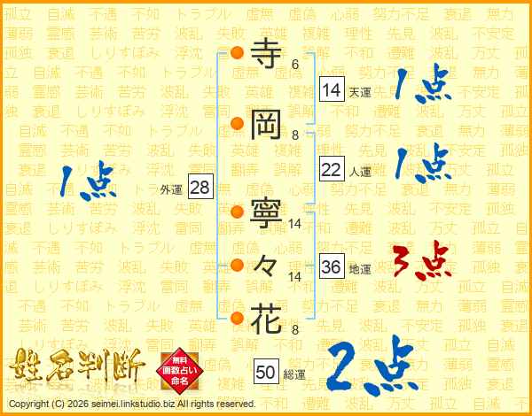 寺岡寧々花さんの天運は14画の1点!