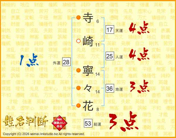寺崎寧々花さんの天運は17画の4点!
