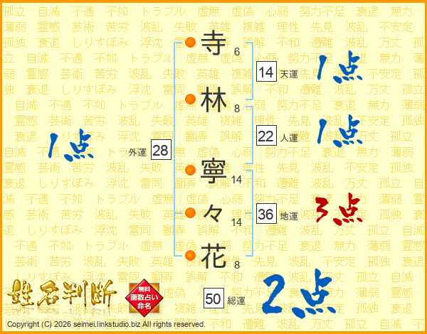 寺(6画)林(8画) 寧(14画)々(14画)花(8画)