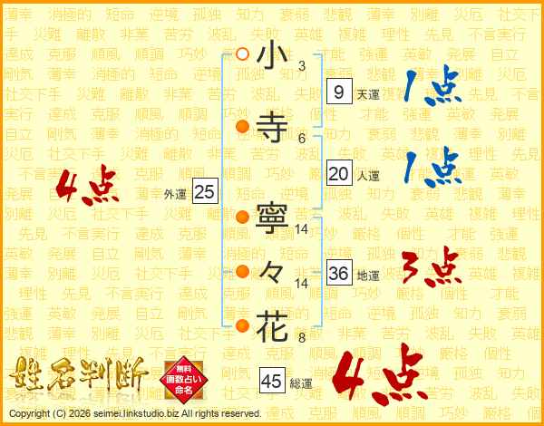 小(3画)寺(6画) 寧(14画)々(14画)花(8画)