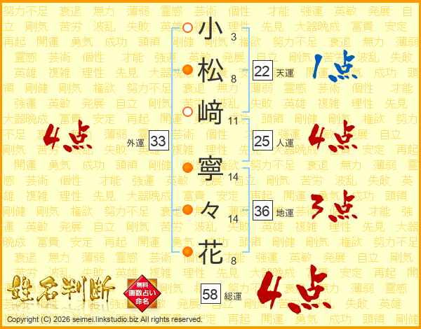 小松﨑寧々花さんの総運は58画の4点!