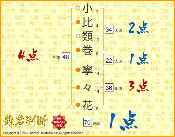 小(3画)比(4画)類(19画)巻(8画) 寧(14画)々(14画)花(8画)