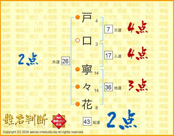戸口寧々花さんの総運は43画の2点!