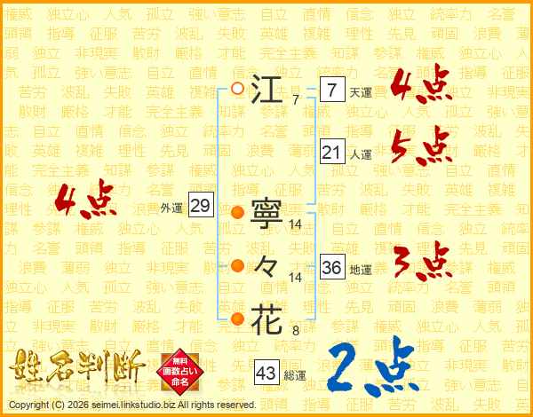江寧々花さんの総運は43画の2点!