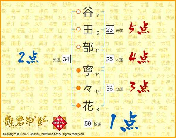 谷(7画)田(5画)部(11画) 寧(14画)々(14画)花(8画)