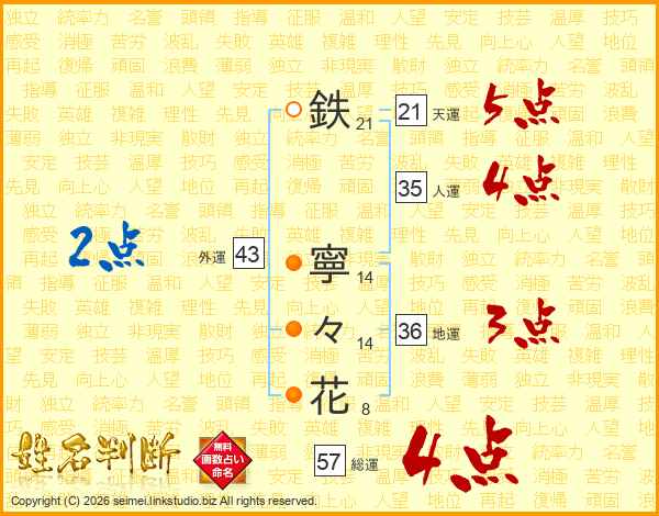鉄寧々花さんの外運は43画の2点!